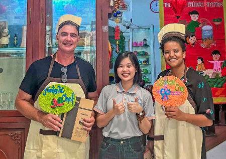 You will have the opportunity to learn a selection of favorite dishes, an ability to recognize the basic ingredients, the blending of these many ingredients and spices to create the famous “nước mắm” (fish sauce), as well as techniques for cooking different kinds of rice. Apart from the preparation and cooking under our Chef’s guidance, you will be introduced to the traditional Vietnamese kitchen with cooking utensils still closely linked to the Vietnamese way of life in the past. Also, you will learn a touch of oriental science with the Yin-Yang balance to respect, some of the history of Vietnamese Cuisine from its roots in the Hue Citadel Imperial Cuisine, and on to the effects of various influences from both the West and other Eastern Cultures. Finally, you will understand the intricacies of Vietnamese dining etiquette and the technique to master chopsticks!